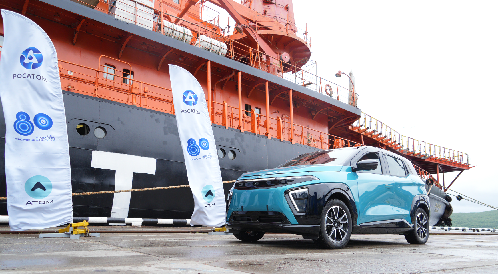 При содействии Госкорпорации «Росатом» российский электромобиль «Атом» отправился в полярную экспедицию на атомном ледоколе «50 лет Победы». «Атом на ледоколе» – это совместный проект ФГУП «Атомфлот», Топливного дивизиона «Росатома», в структуре которого создано бизнес-направление электромобильность, а также АО «Кама» - разработчика и производителя российского «Атома».